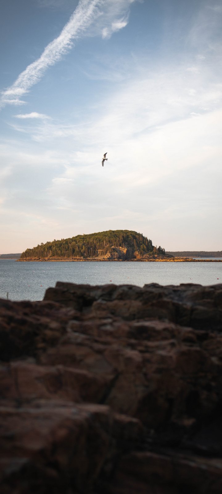 Wallpaper: island in the lake, bird flight - 720x1600