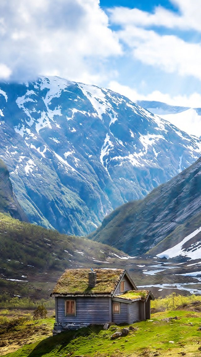 Wallpaper: house, mountains, landscape - 640x1136