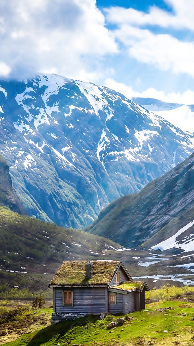 Wallpaper: house, mountains, landscape - 750x1334
