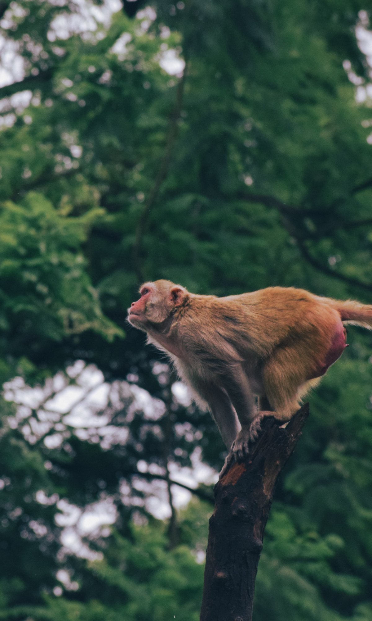 Wallpaper: red monkey, tree jump - 1200x2000