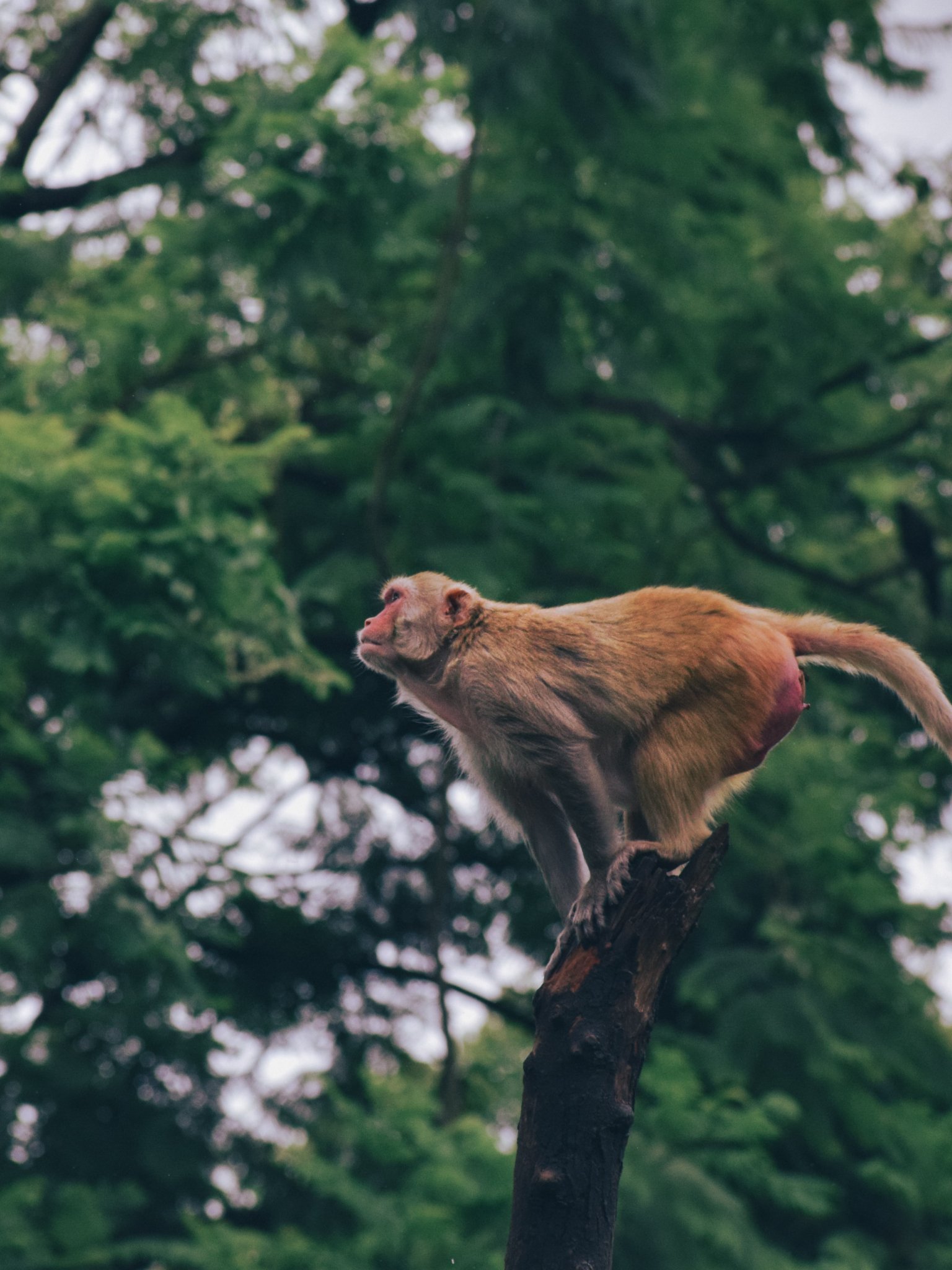 Wallpaper: red monkey, tree jump - 1536x2048