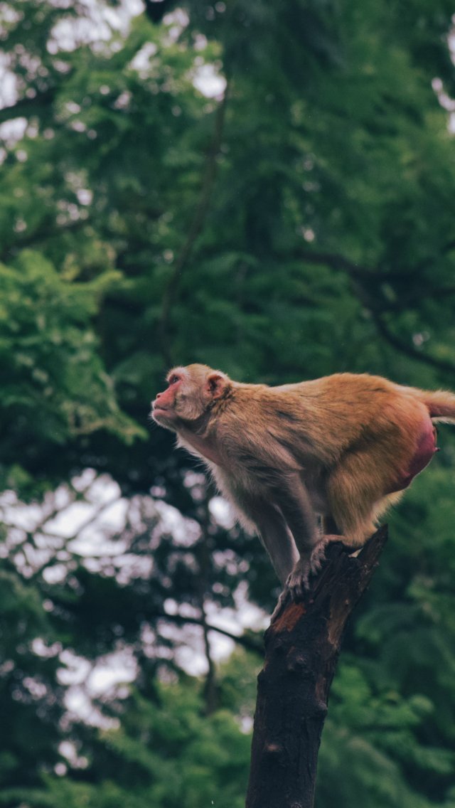 Wallpaper: red monkey, tree jump - 640x1136