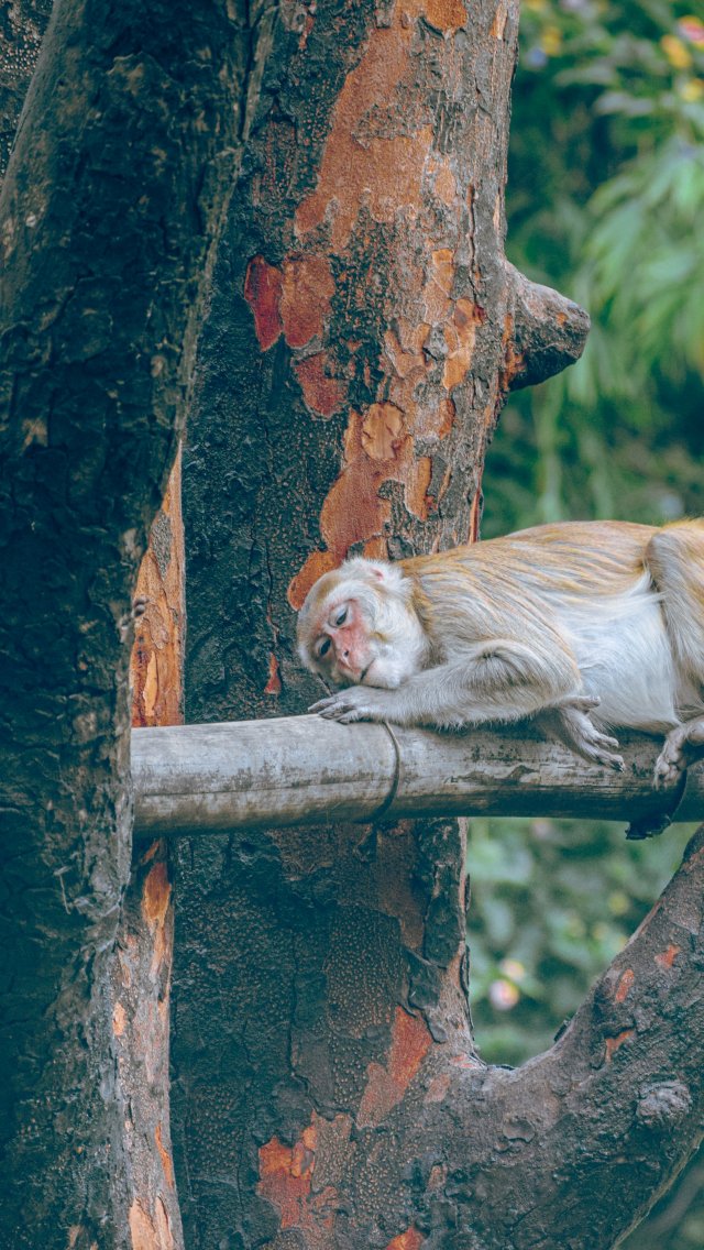 Wallpaper: monkey family, monkey rest - 640x1136