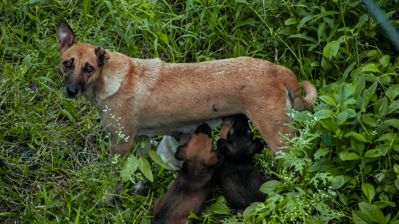 Wallpaper: homeless dog, puppies - 1366x768
