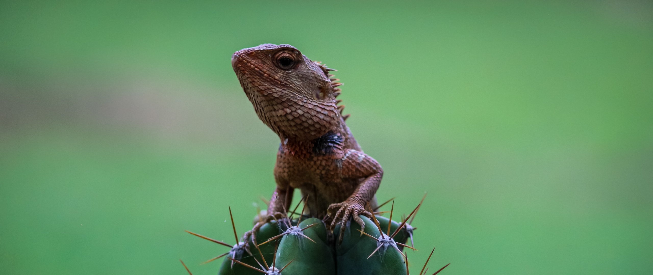 Wallpaper: lizard on cactus - 2560x1080
