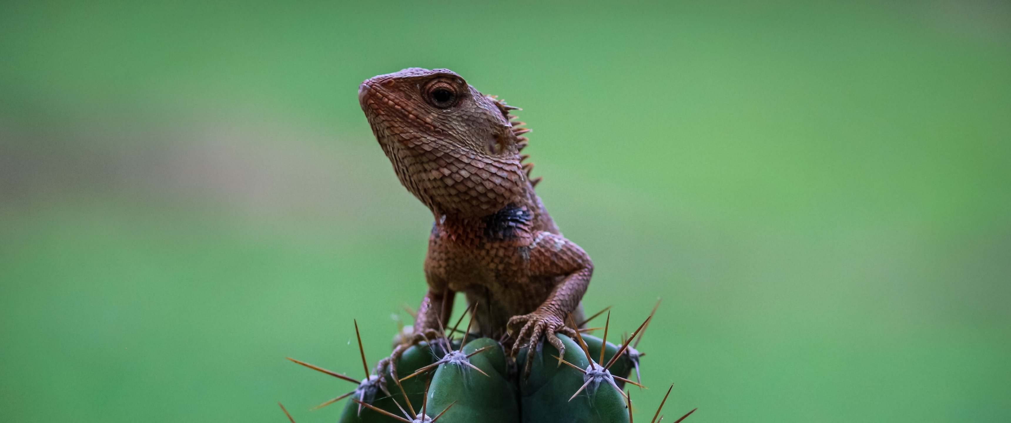 Wallpaper: lizard on cactus - 3440x1440