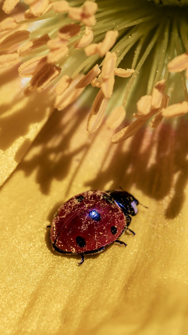 Wallpaper: ladybug on a flower - 640x1136