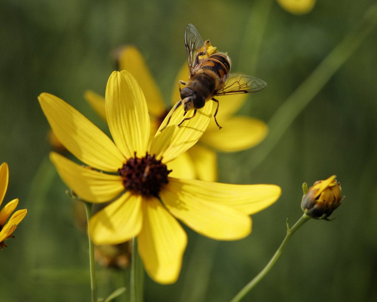 Wallpaper: bee on yellow flower - 1280x1024