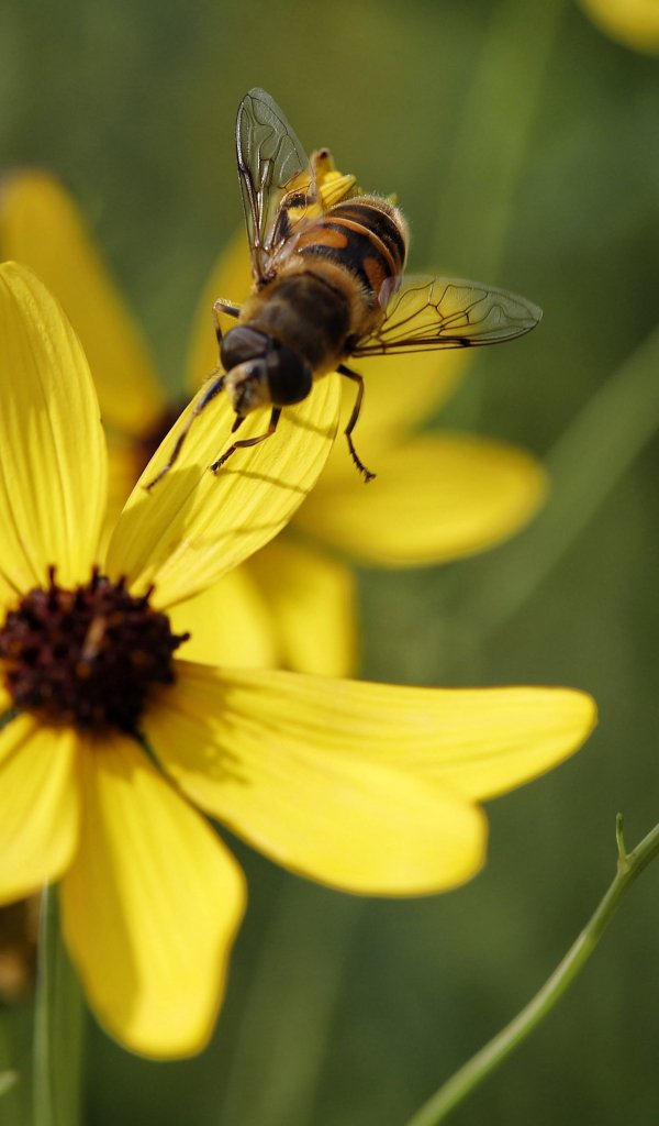 Wallpaper: bee on yellow flower - 600x1024