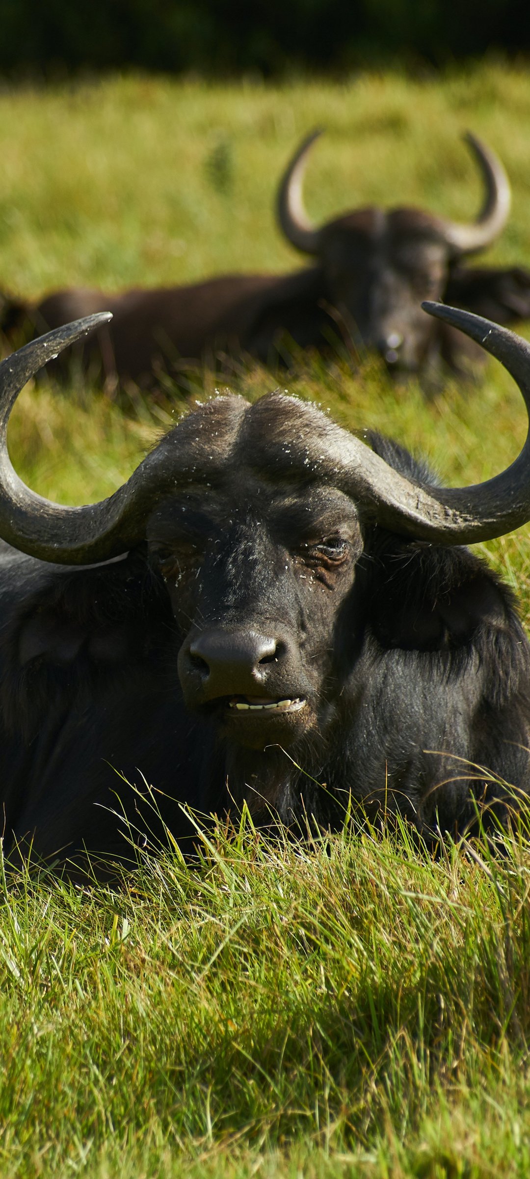 Wallpaper: buffaloes on pasture - 1080x2400