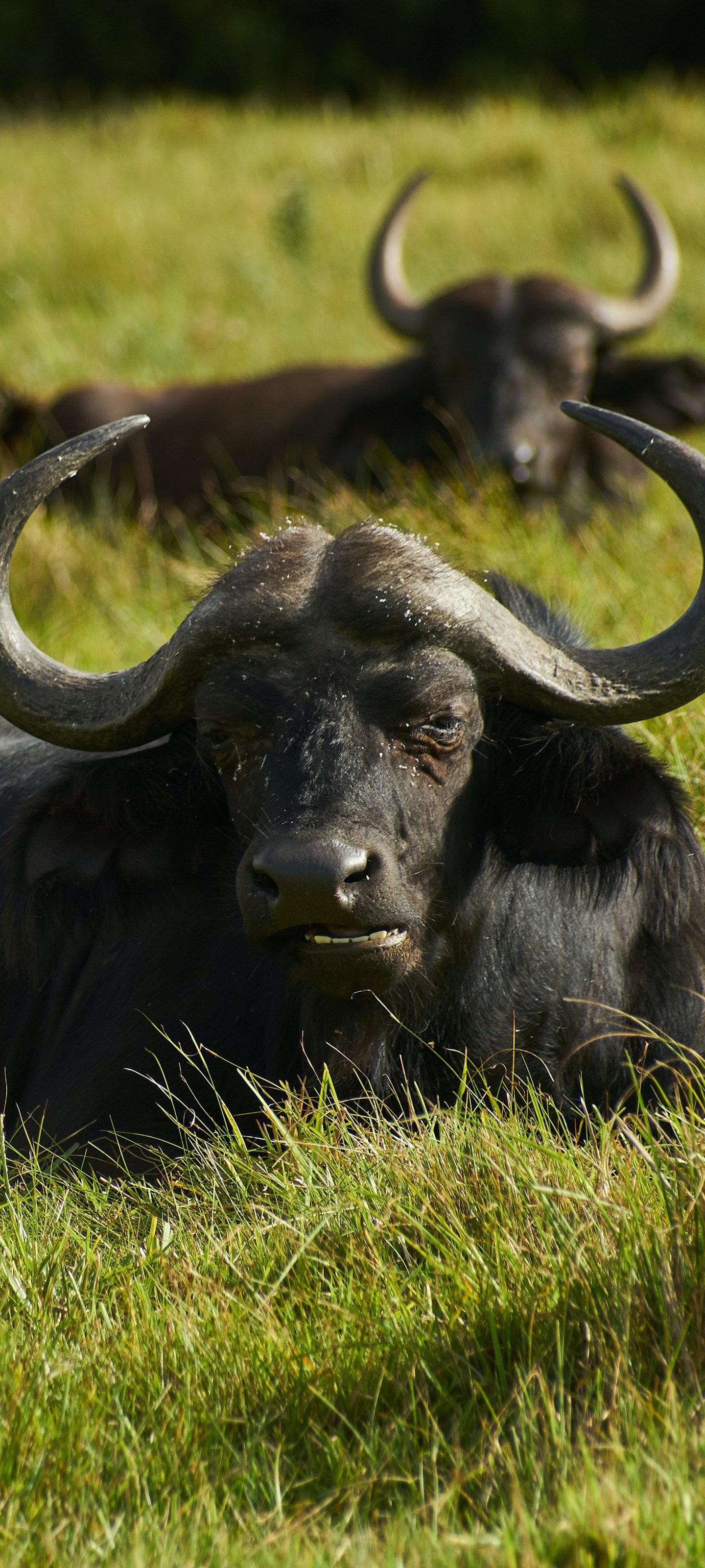 Wallpaper: buffaloes on pasture - 1440x3200