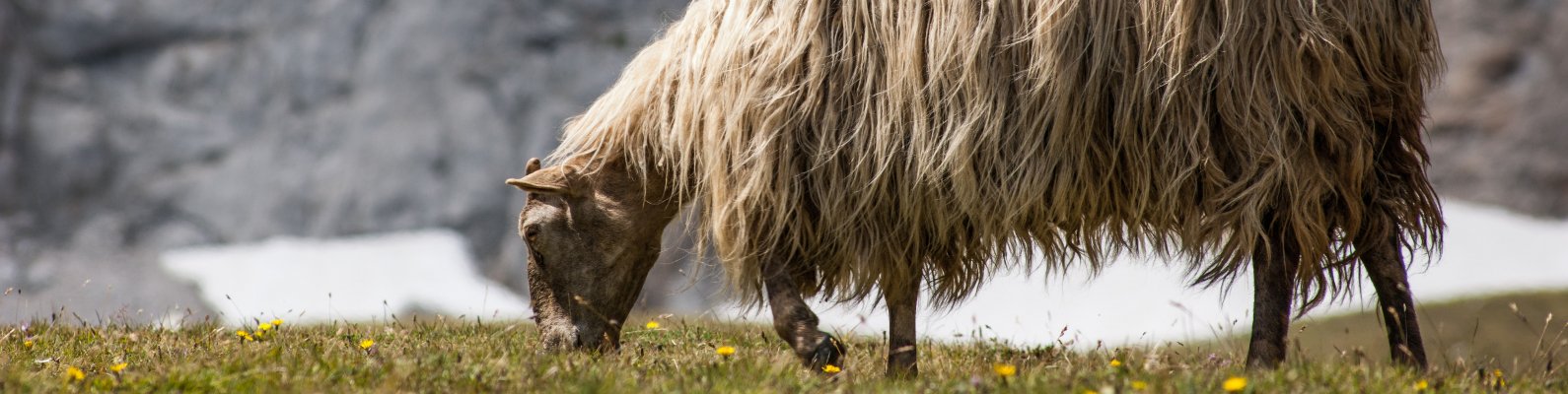 Wallpaper: sheep walking, pasture - 1590x400