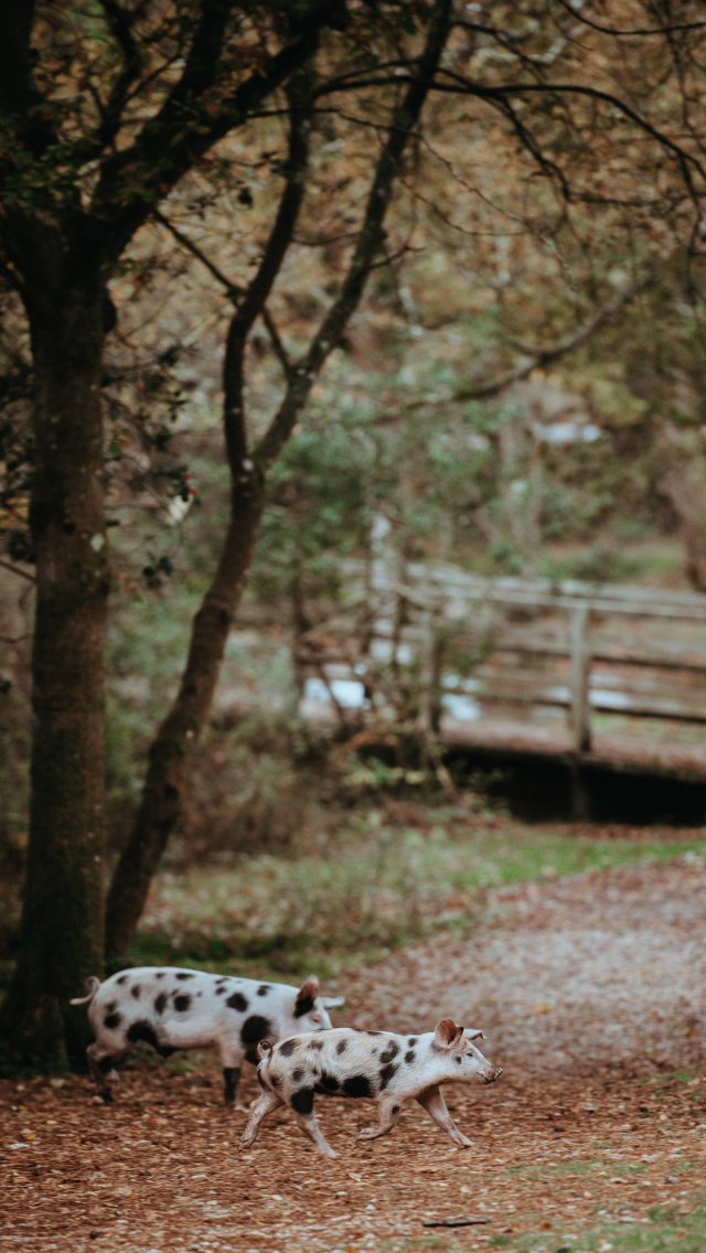 Wallpaper: spotted pigs, on a walk - 640x1136