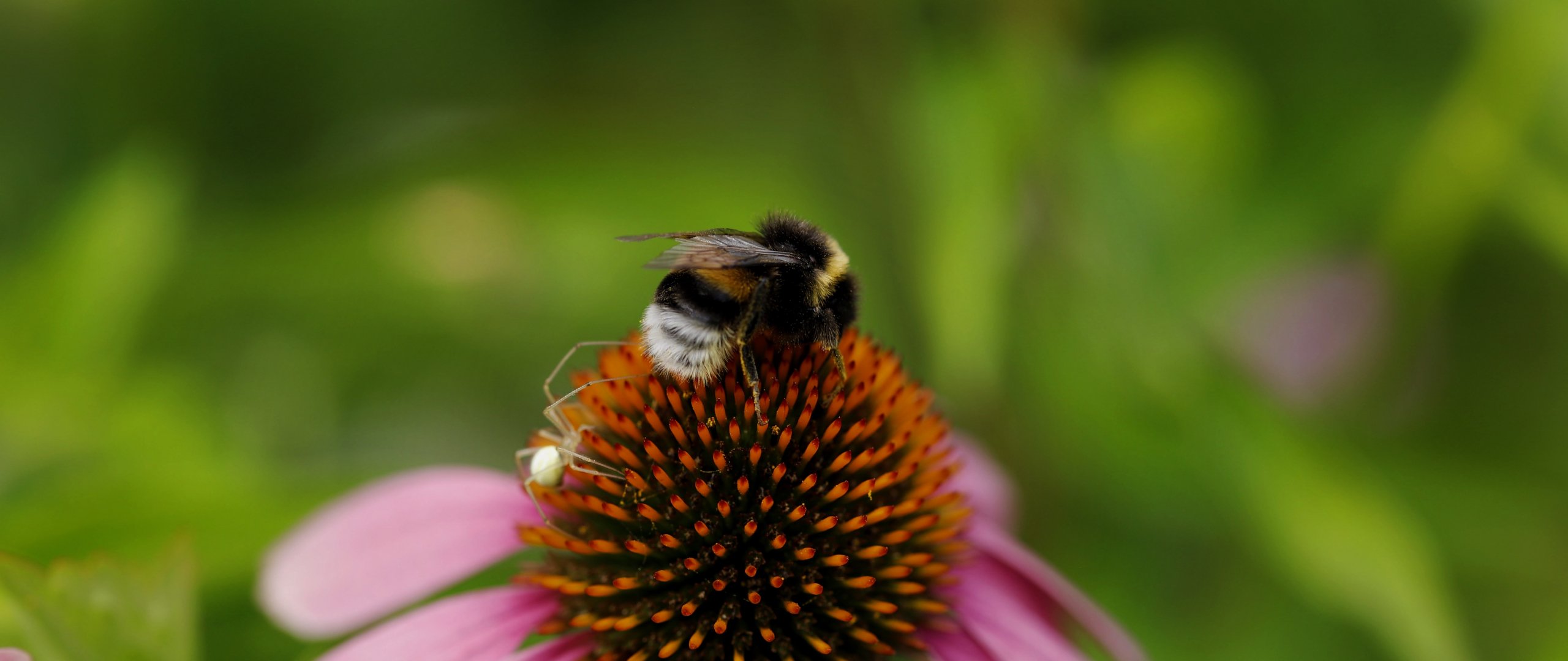 Wallpaper: bumblebee on pink flower - 2560x1080