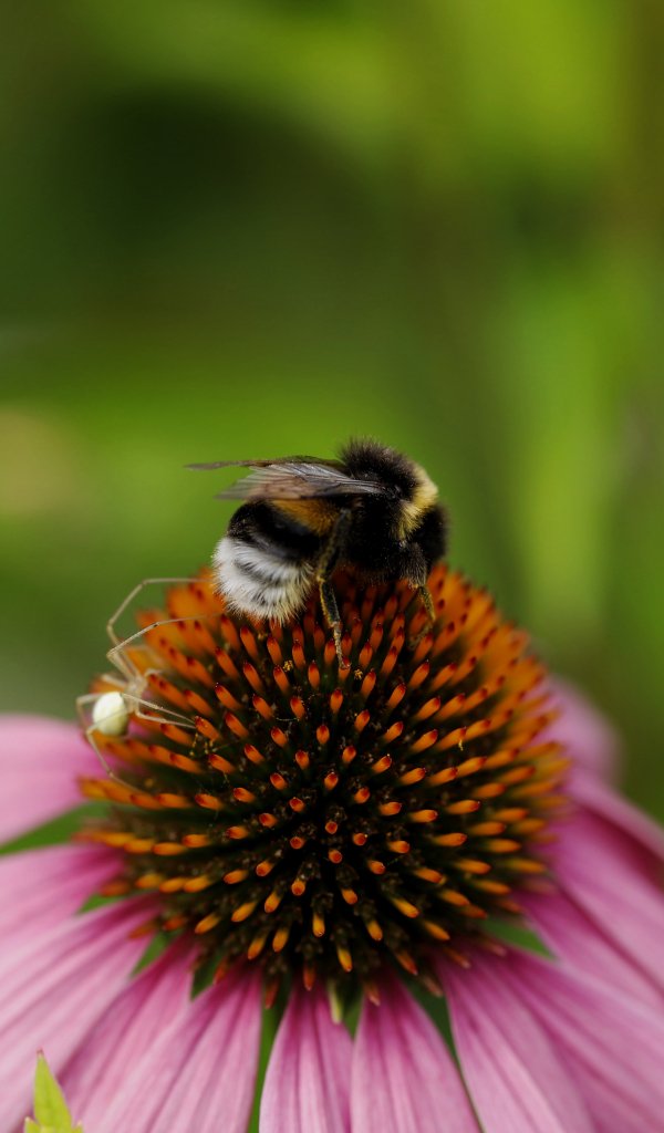 Wallpaper: bumblebee on pink flower - 600x1024