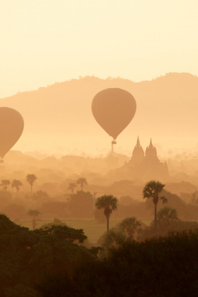 Wallpaper: morning dawn, balloons - 640x960