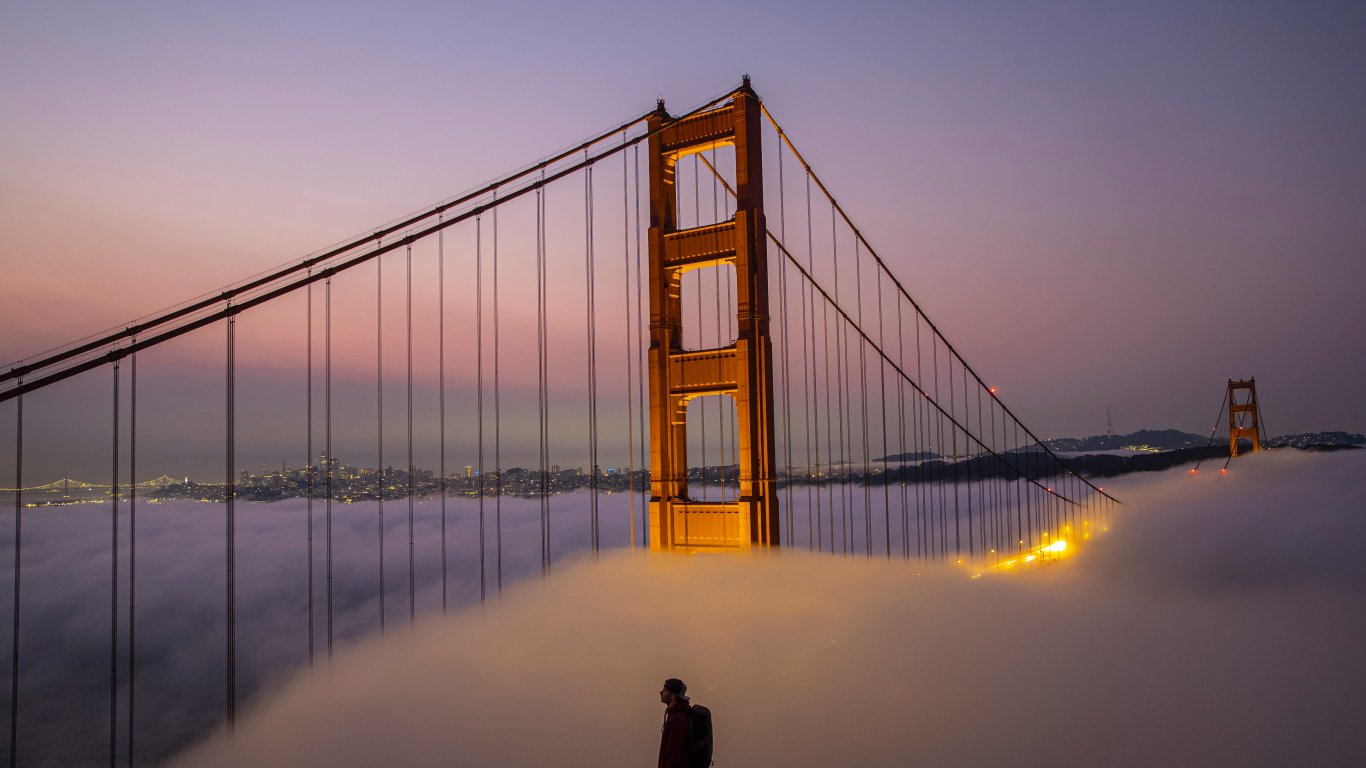 Wallpaper: suspension bridge, San Francisco - 1366x768