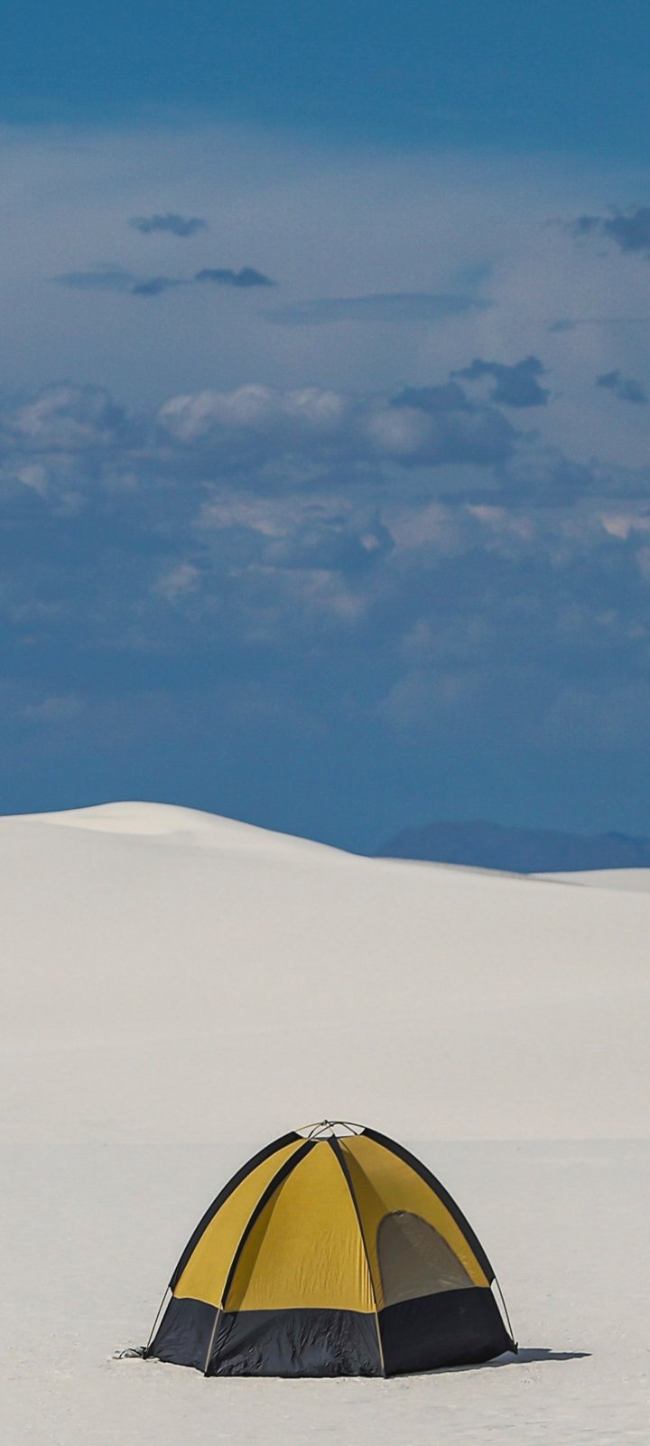 Wallpaper: tent, snowy valley - 720x1600