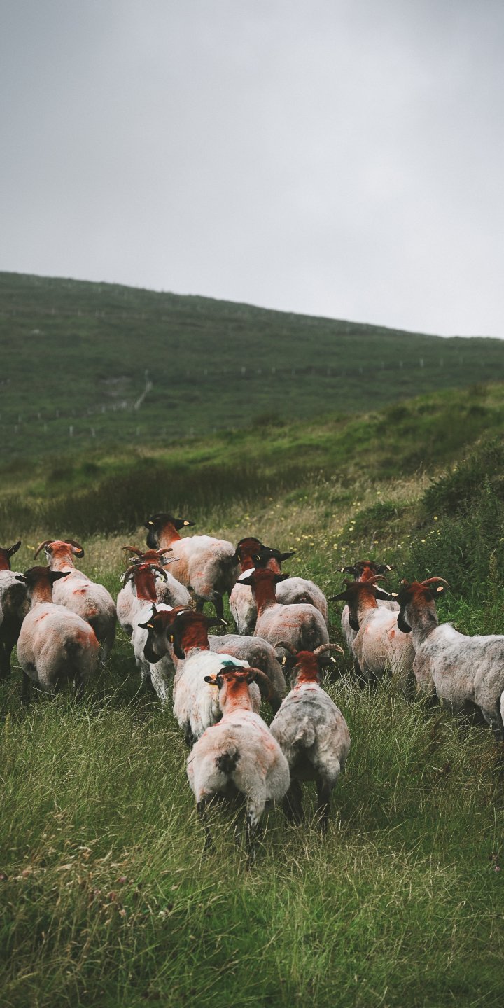 Wallpaper: flock of sheep, pasture - 720x1440
