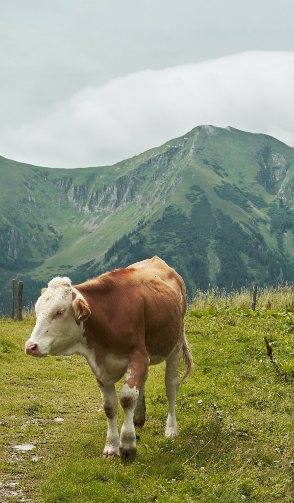 Wallpaper: Alps, mountains, cow - 600x1024