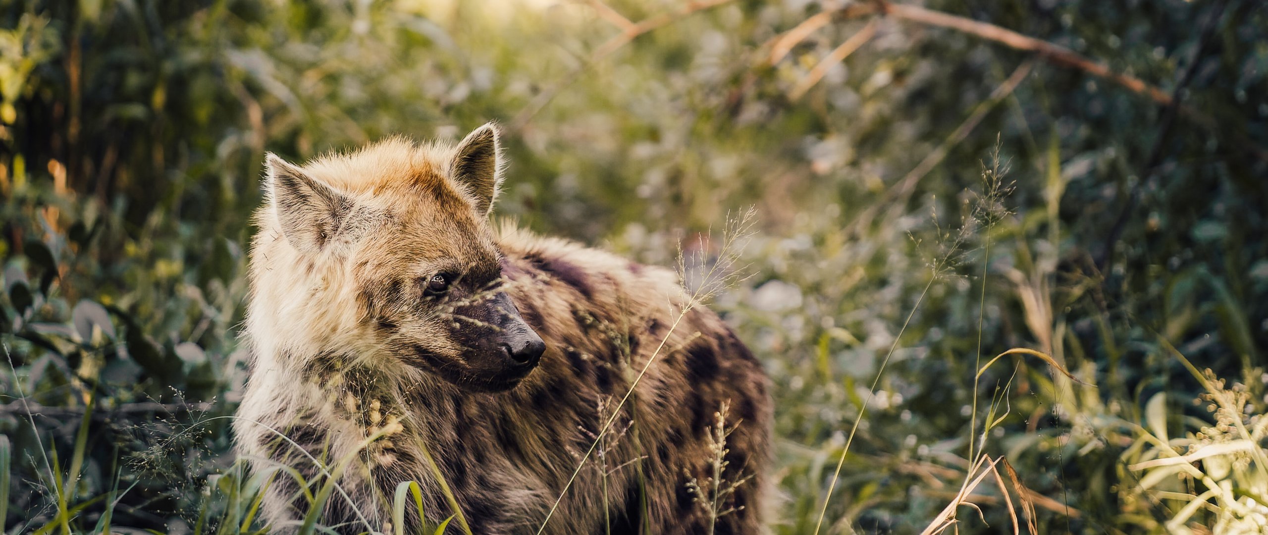 Wallpaper: wild hyena, South Africa - 2560x1080
