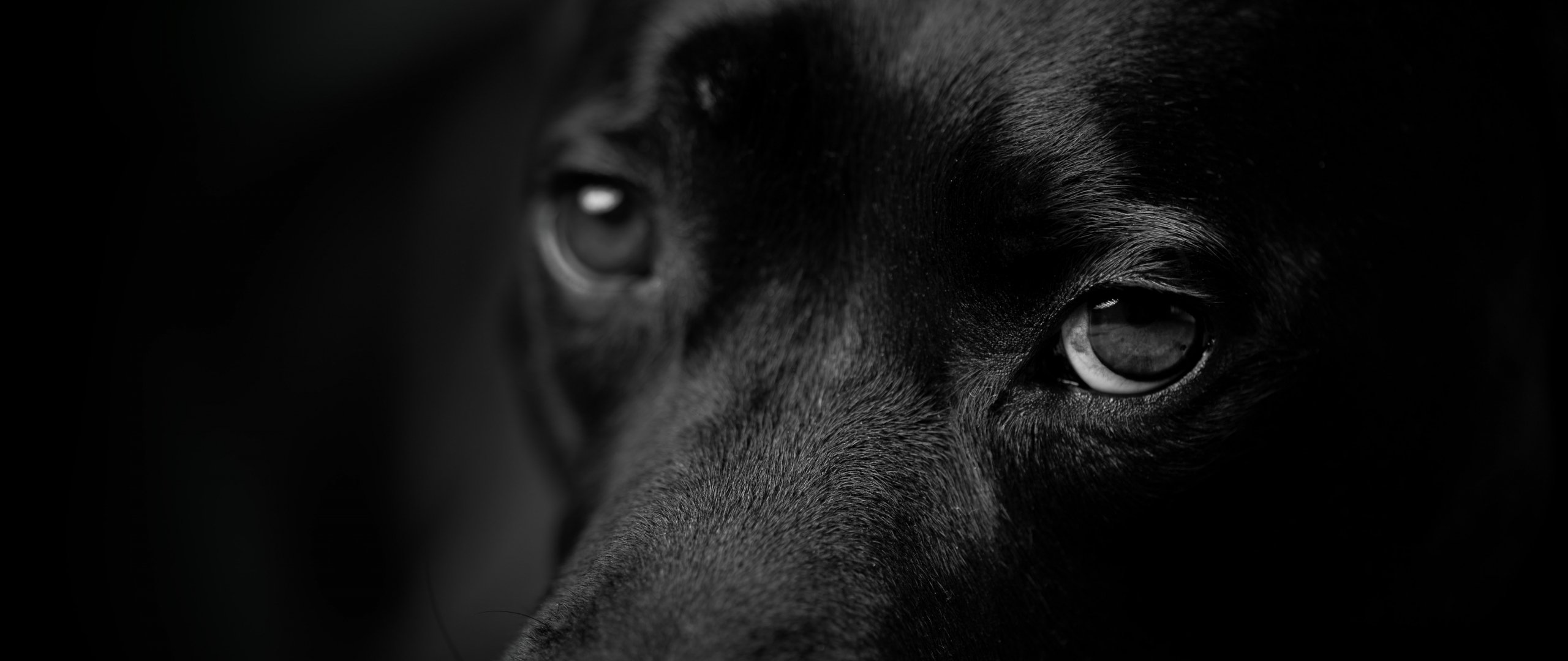 Wallpaper: dog eyes, dog portrait - 2560x1080