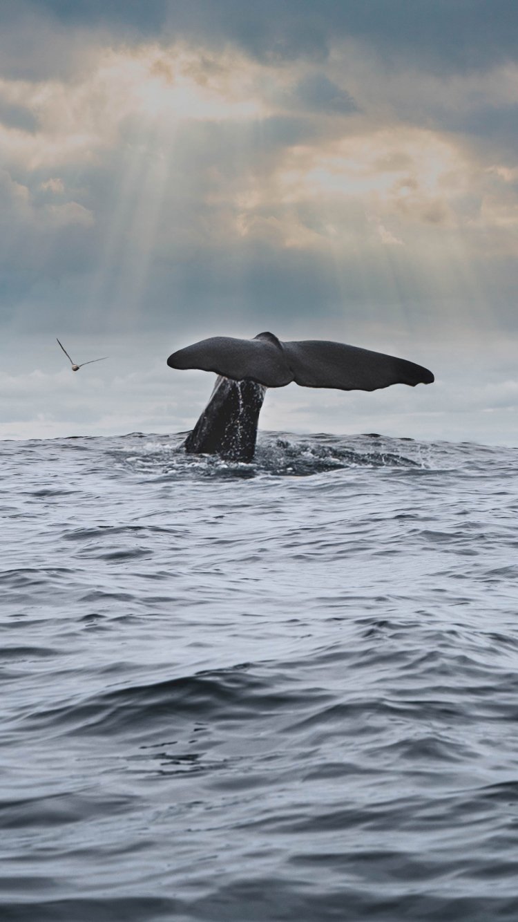 Wallpaper: sea, whale - 750x1334