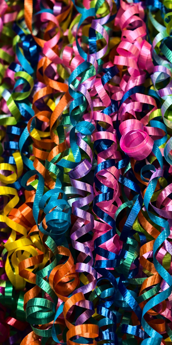 Wallpaper: confetti, colorful ribbons - 720x1440
