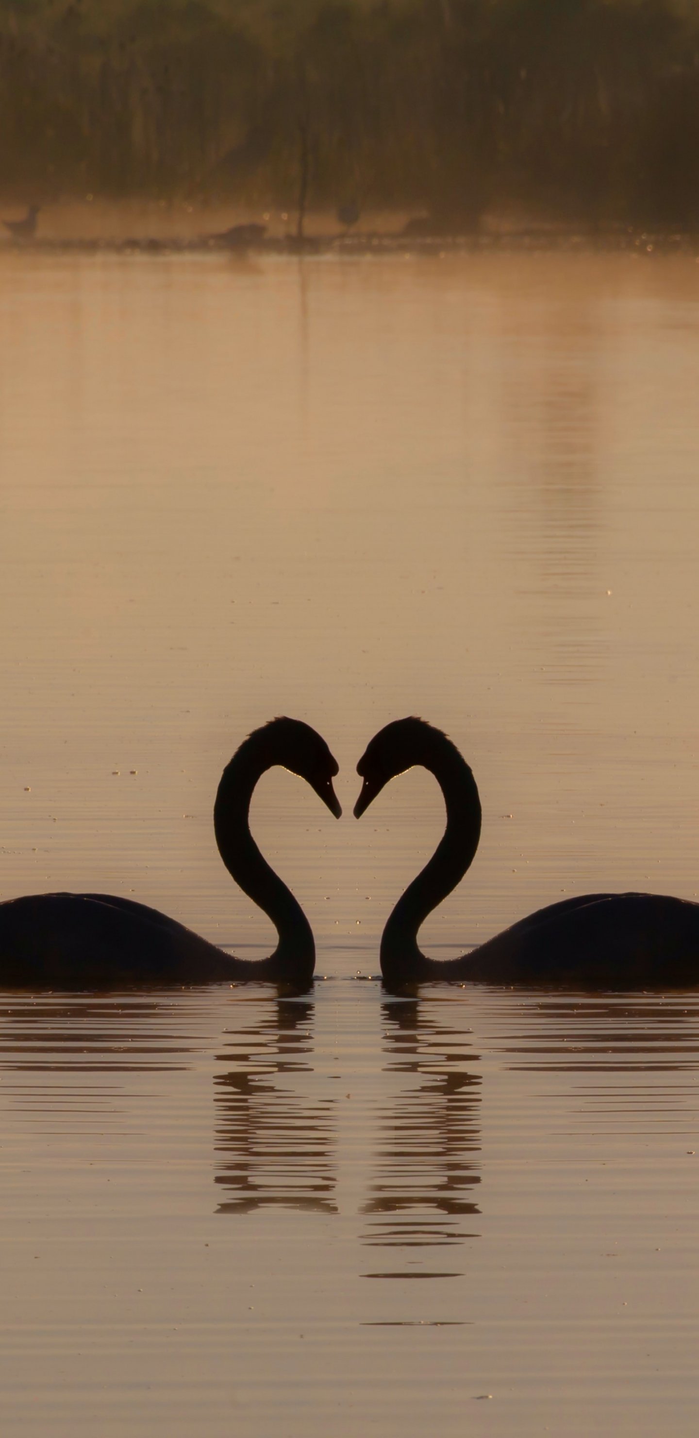 Wallpaper: two swans, lake - 1440x2960