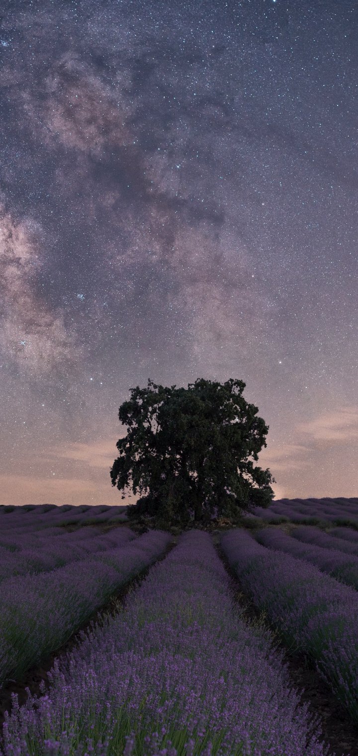 Wallpaper: lavender, night field - 720x1520