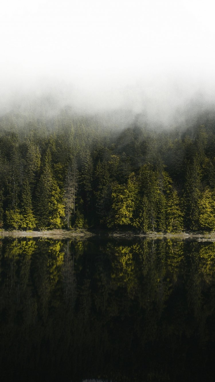 Wallpaper: reflection of the forest in the lake - 750x1334