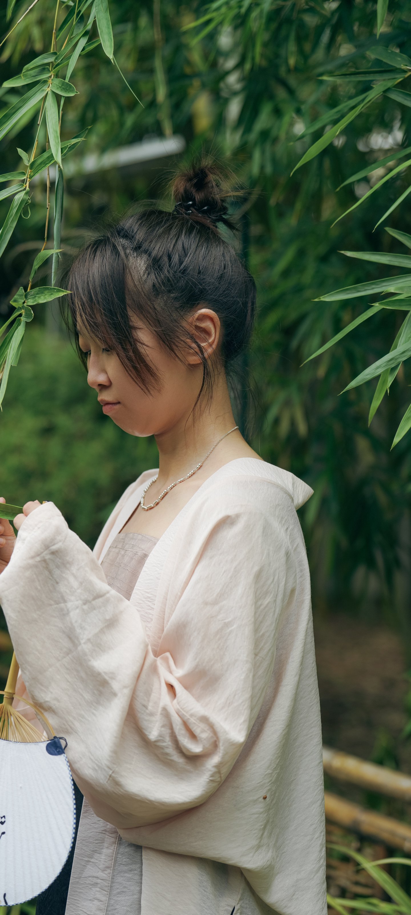 Wallpaper: Oriental girl in the forest - 1440x3200
