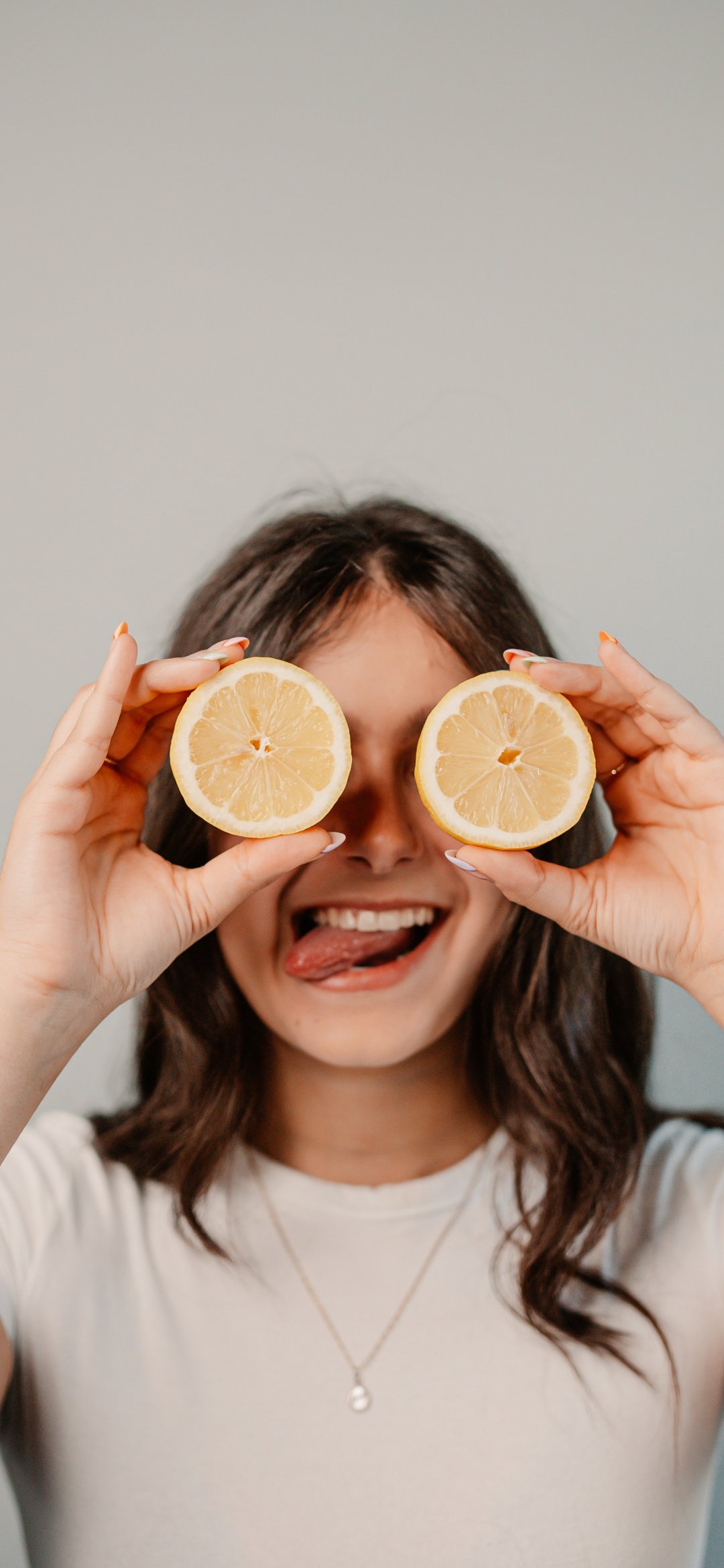 Wallpaper: girl with oranges - 1080x2340