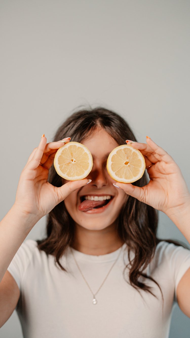 Wallpaper: girl with oranges - 750x1334