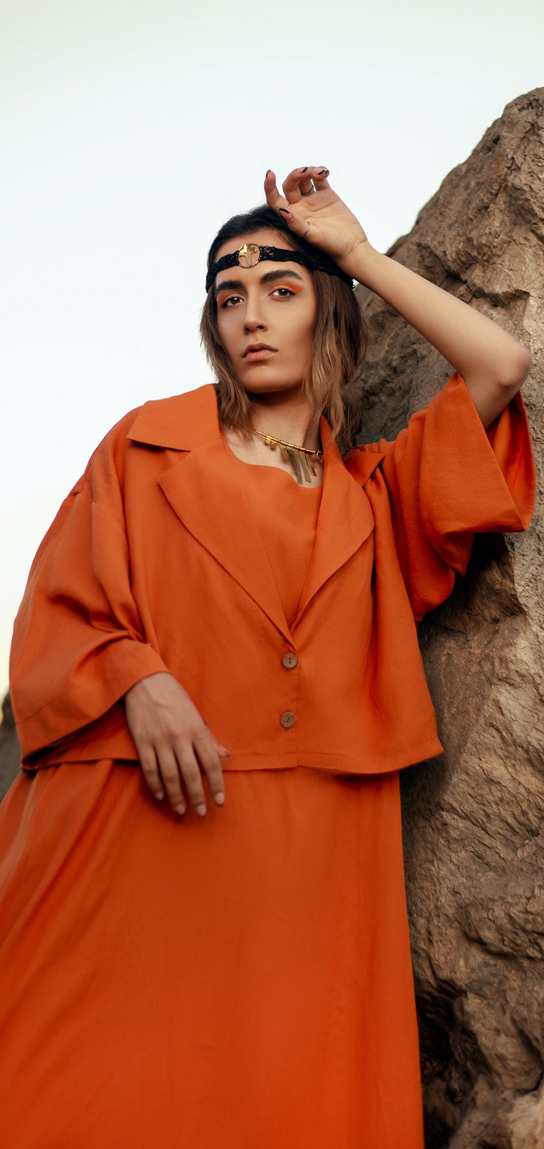 Wallpaper: girl in orange - 1080x2280