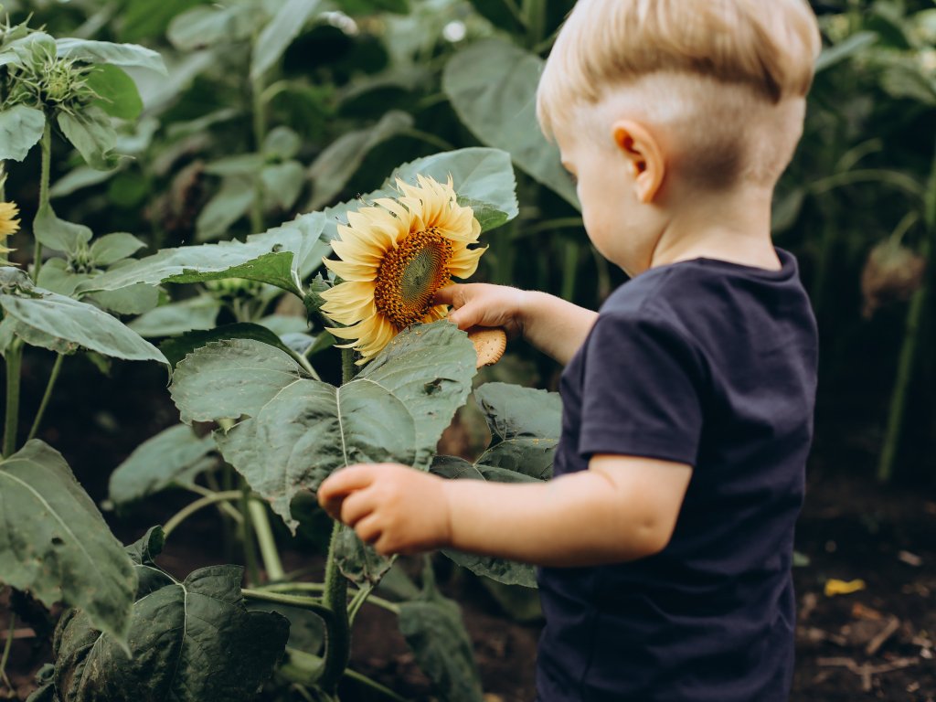 Wallpaper: baby, sunflower - 1024x768
