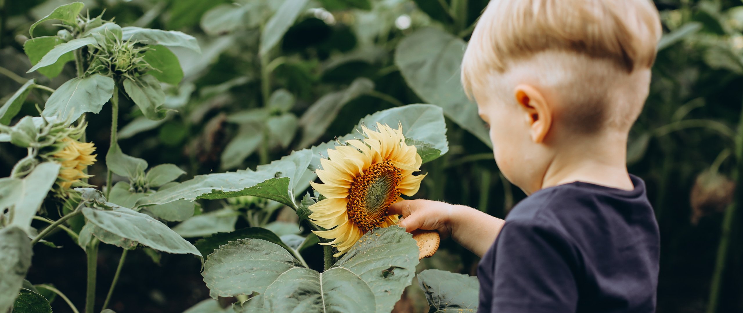 Wallpaper: baby, sunflower - 2560x1080