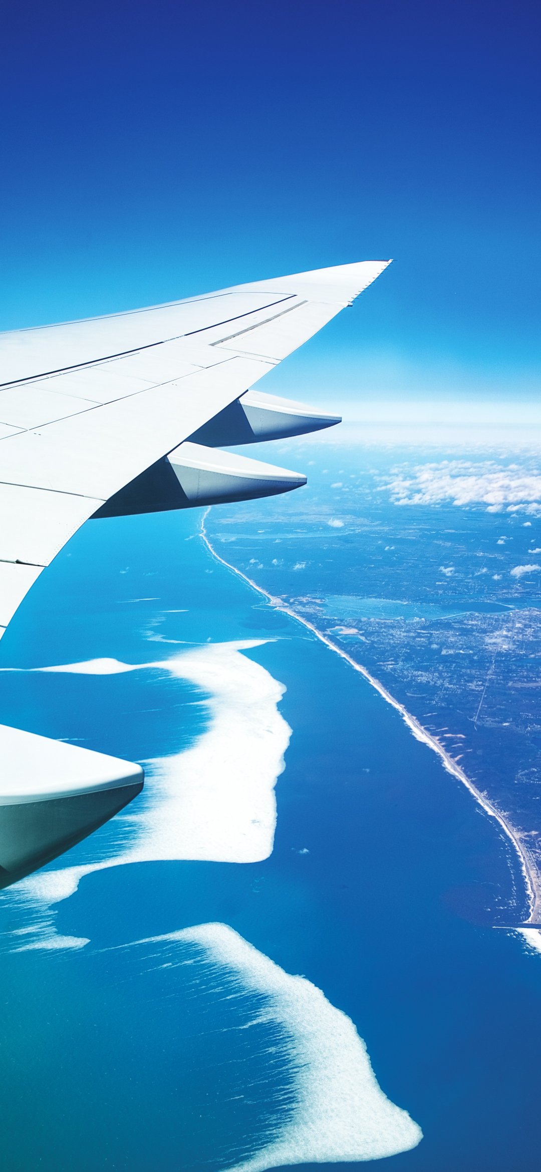 Wallpaper: airplane wing, flight - 1080x2340