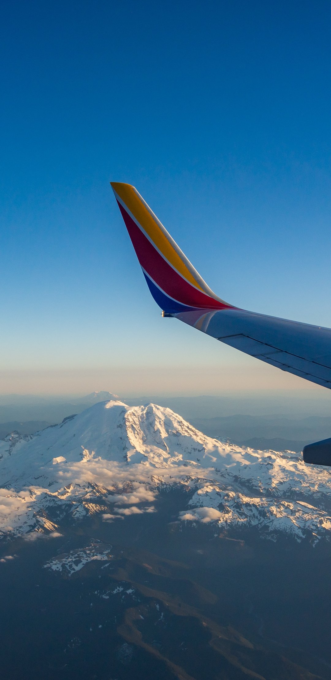 Wallpaper: airplane wing, flight, Mount Rainier - 1080x2220