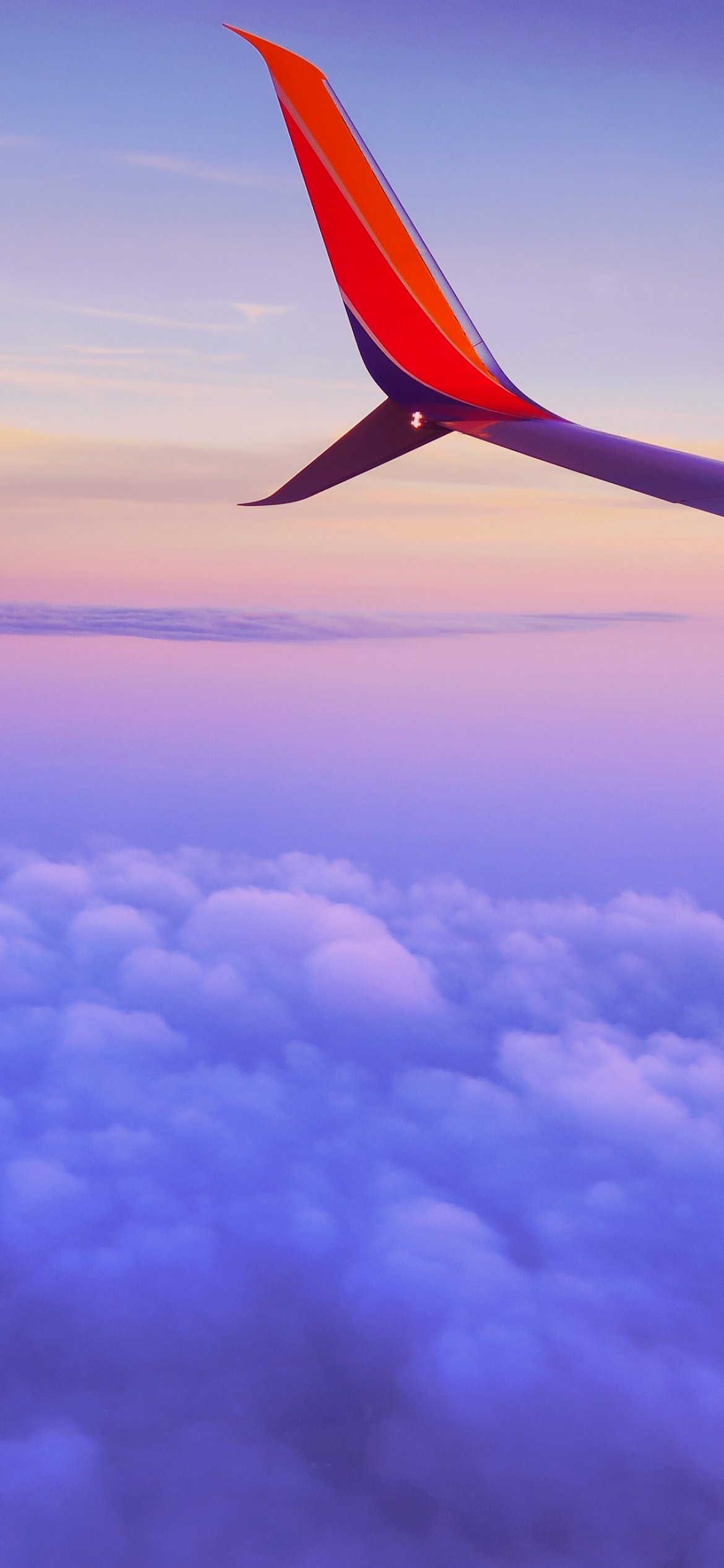 Wallpaper: airplane wing, flight, clouds - 1170x2532