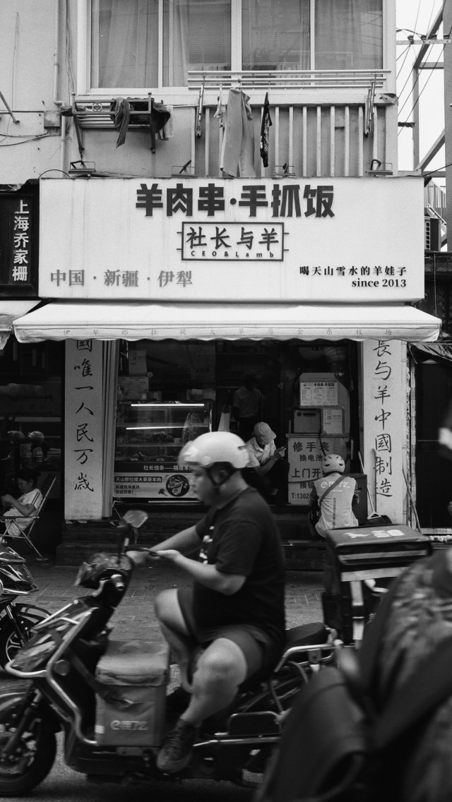 Wallpaper: East, ЧБ, scooter - 640x1136