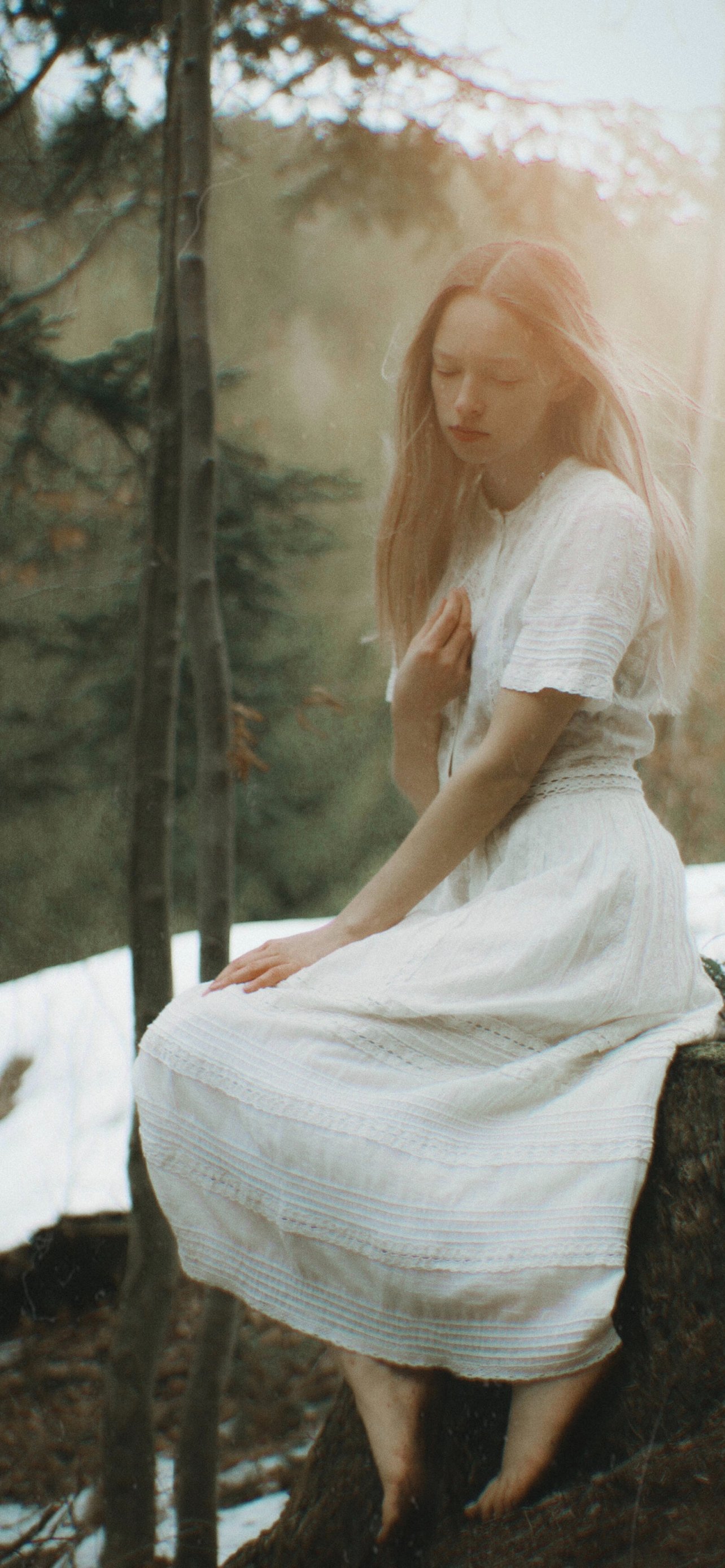 Wallpaper: The girl in the forest - 1284x2778