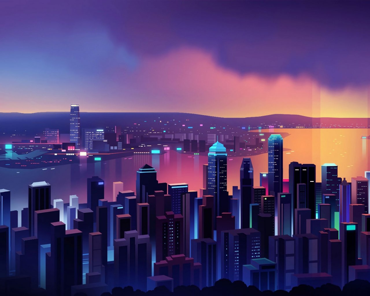 Wallpaper: night city, bird's-eye view, purple - 1280x1024