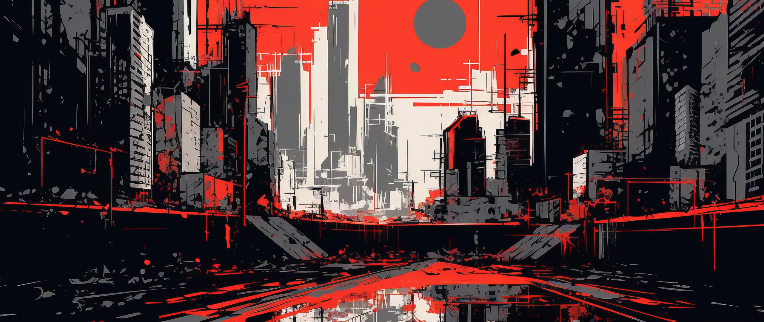 Wallpaper: urban landscape, red - 2560x1080