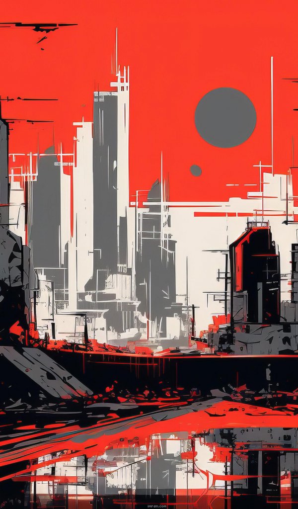 Wallpaper: urban landscape, red - 600x1024