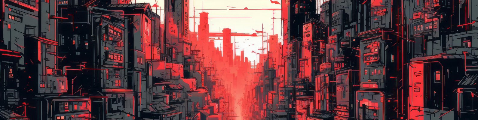 Wallpaper: cityscape, red, city - 1590x400