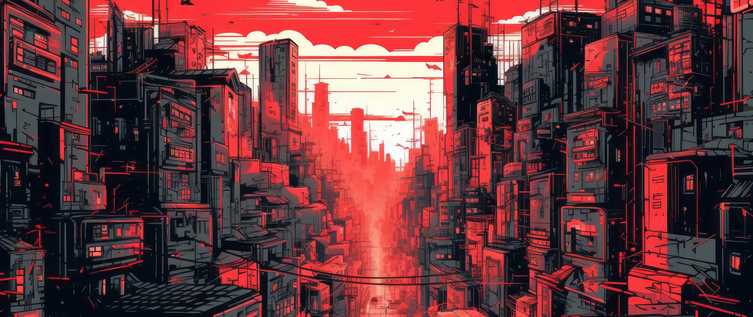 Wallpaper: cityscape, red, city - 2560x1080