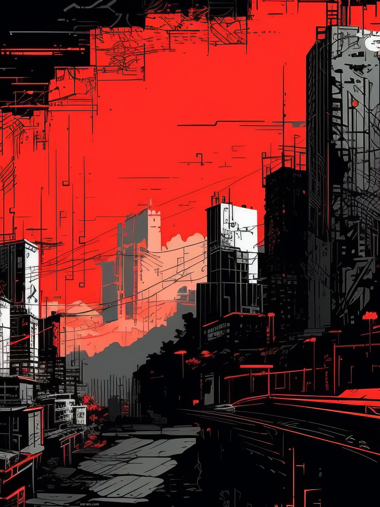 Wallpaper: urban landscape, red - 1536x2048