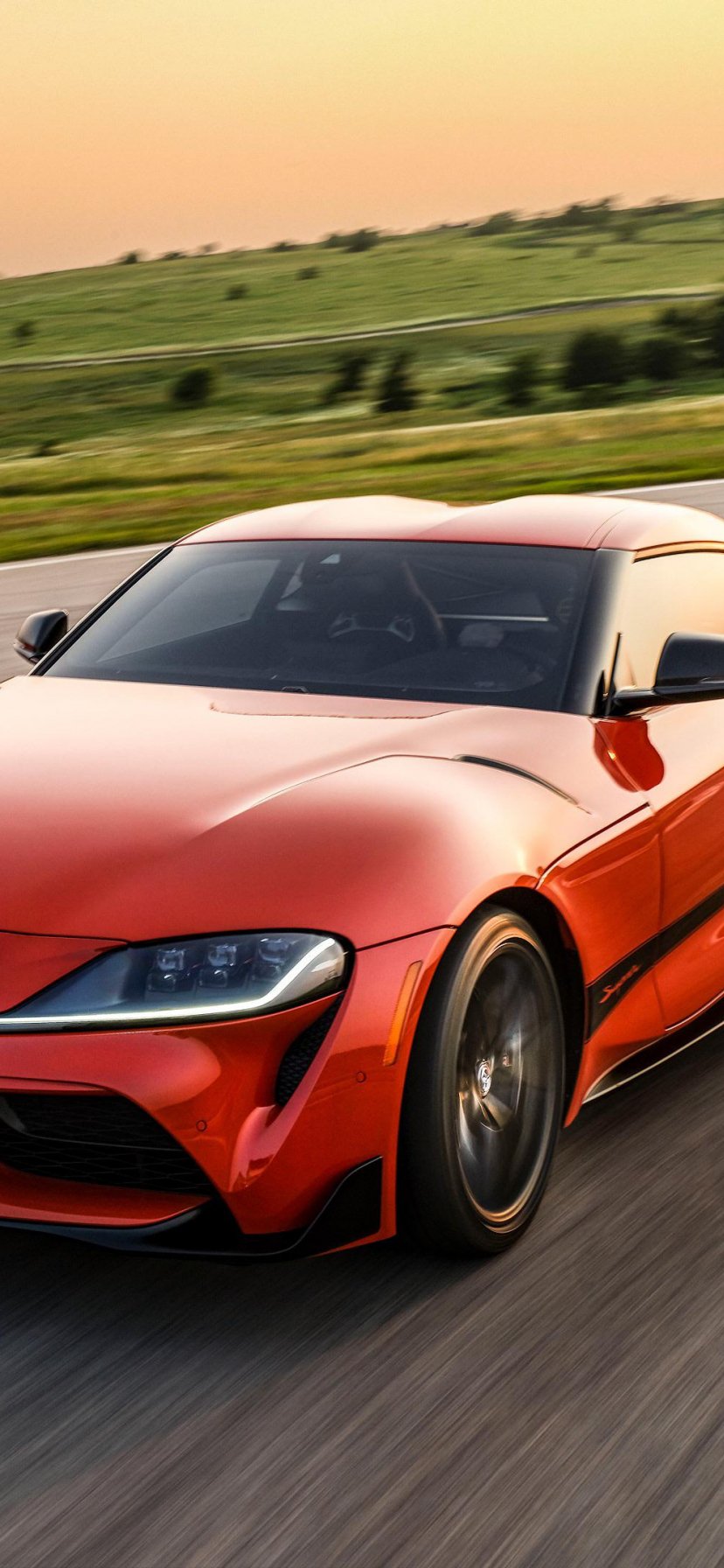 Wallpaper: Toyota GR Supra, red car, speed - 828x1792