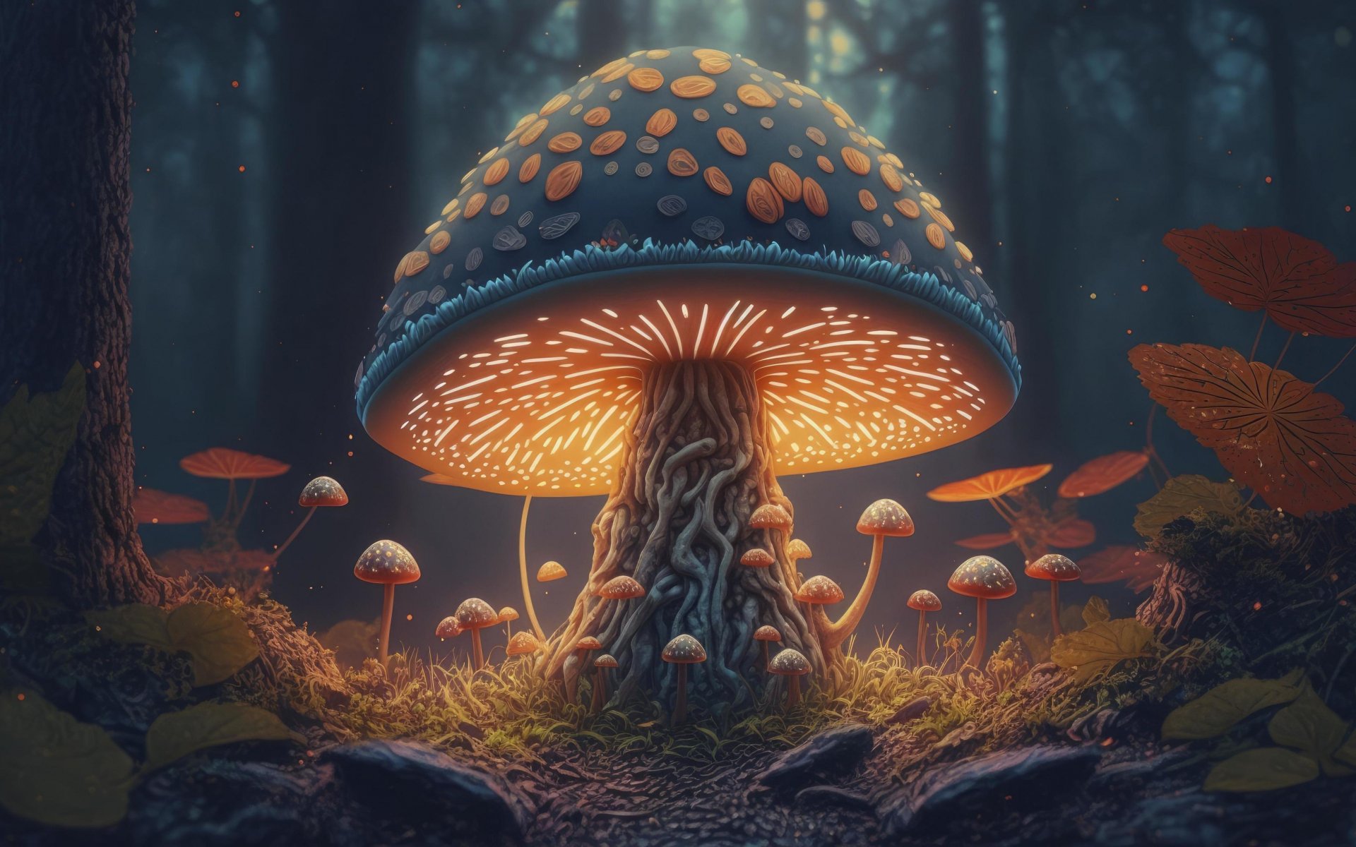 Wallpaper: mushroom forest, mushroom, glow - 1920x1200